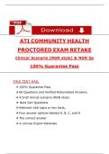 This resource mirrors the ATI layout and is designed specifically to help nursing students pass the Community Health Proctored Exam Retake with ease. Each question includes A–D answer choices, the correct option, and a clear expert ratio...