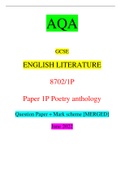AQA GCSE ENGLISH LITERATURE 8702/1P Paper 1P Poetry anthology Question Paper + Mark scheme [MERGED] June 2022