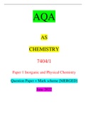 AQA AS CHEMISTRY 7404/1 Paper 1 Inorganic and Physical Chemistry Question Paper + Mark scheme [MERGED] June 2022
