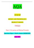 AQA A-level DESIGN AND TECHNOLOGY: PRODUCT DESIGN 7552/2 Paper 2 Designing and Making Principles Question Paper + Mark scheme [MERGED] June 2022