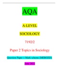 AQA A-LEVEL SOCIOLOGY 7192/2 Paper 2 Topics in Sociology Question Paper + Mark scheme [MERGED] June 2022