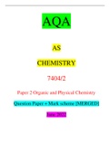 AQA AS CHEMISTRY 7404/2 Paper 2 Organic and Physical Chemistry Question Paper + Mark scheme [MERGED] June 2022