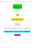 AQA AS SOCIOLOGY 7191/2 Paper 2 Research Methods and Topics in Sociology Question Paper + Mark scheme [MERGED] June 2022