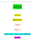 AQA A-level BIOLOGY 7402/3 Paper 3 Question Paper + Mark scheme [MERGED] June 2022