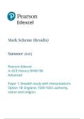 - Pearson Edexcel In GCE History (9HI0/1B) Advanced Paper 1: Breadth study with interpretations Option 1B: England, 1509-1603: authority, nation and religion marking scheme June 2025 • Exam (elaborations)