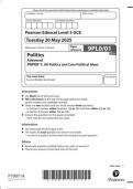 Pearson Edexcel Level 3 GCE Politics Advanced Paper reference 9PL0/01 PAPER 1: UK Politics and Core Political Ideas June 2025