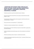 CERTIFIED RECOVERY PEER SPECIALIST EXAM ACTUAL EXAM REVIEW QUESTIONS AND CORRECT ANSWERS (VERIFIED ANSWERS) A GRADE Terms in this set (16) The ability to bounce back or cope in the face of adversity is known as Resilience. Research has shown th Contact. the most powerful way to reduce stigma associated with behavioral health disorders is One technique that can help boost confidence and encourage peers to stretch their comfort zones in relationship building is: role playing. The most common facto...