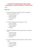 This is the complete, expert-verified test bank for the 3rd edition of Asking Questions About Cultural Anthropology by Robert L. Welsch and Luis A. Vivanco. It provides a comprehensive set of exam questions and verified answers for all chapters. The resource covers the four subfields of anthropology—biological, linguistic, cultural, and archaeology—with a strong focus on key concepts such as cultural relativism, human diversity, and the study of material remains. Each question is designed to...