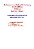 This is the complete Solutions Manual for the 9th edition of Business Law and the Legal Environment, Standard Edition by Jeffrey F. Beatty, Susan S. Samuelson, and Patricia Sanchez Abril. It provides comprehensive answers and in-depth explanations for all 44 chapters, covering multiple-choice questions, case analyses, and discussion prompts. The resource explores the origins of the U.S. legal system—including influences from English common law and the Iroquois system of federalism—and detail...