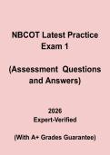 The NBCOT Latest Practice Exam 1 2025/2026 PDF provides a complete set of verified practice questions and detailed answers aligned with the official National Board for Certification in Occupational Therapy (NBCOT) exam blueprint. Covering all core domains including client evaluation, intervention planning, professional ethics, and occupational performance, this resource helps students and professionals strengthen exam readiness, reinforce key concepts, and build confidence for achieving top scor...