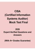 - CISA Practice Exam – Questions and Answers 2025/2026 | Verified Certified Information Systems Auditor Study Guide • Exam (elaborations)