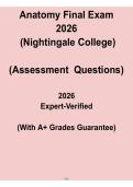This Anatomy Final Exam 2026 PDF is a targeted study resource designed specifically for Nightingale College students preparing for their anatomy final assessment. The material includes exam-style questions and focused review content covering major body systems, anatomical terminology, physiological processes, and clinical correlations relevant to nursing education. Ideal for final revision, self-assessment, and exam readiness, this resource helps nursing students strengthen their understanding, ...