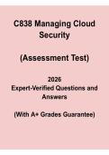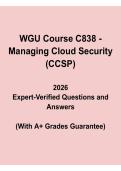 This WGU Course C838 – Managing Cloud Security (CCSP) PDF is a comprehensive study resource designed for students preparing for the C838 course and assessment in 2026. It covers all essential cloud security concepts including governance, risk management, compliance, identity and access management, data protection, and security operations aligned with CCSP principles. Ideal for focused revision, self-assessment, and exam preparation, this resource equips learners with the knowledge and confiden...