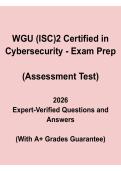This WGU (ISC)² Certified in Cybersecurity Exam Prep PDF is designed for students and IT professionals preparing for the ISC² Certified in Cybersecurity (CC) exam in 2026. It covers fundamental cybersecurity principles, governance frameworks, risk management, security controls, and organizational security program elements, providing a structured approach to exam readiness. Ideal for study, revision, and self-assessment, this resource ensures learners gain both conceptual understanding and prac...