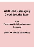 This WGU D320 – Managing Cloud Security PDF is a comprehensive study resource for students preparing for the D320 course assessment in 2026. Covering essential topics including cloud security governance, risk management, compliance, identity and access controls, and data protection strategies, this guide is ideal for focused study and exam preparation. Designed to support structured learning, revision, and self-assessment, it equips learners with the practical knowledge and confidence required...
