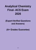 The Analytical Chemistry Final – ACS Exam guide is a targeted exam-preparation resource designed for students preparing for the American Chemical Society (ACS) Analytical Chemistry examination. This guide covers key analytical chemistry concepts, including quantitative analysis, spectroscopy, chromatography, electrochemistry, equilibrium, and data interpretation, presented in an exam-focused format. Ideal for undergraduate chemistry students, this resource supports effective review, strengthen...