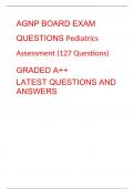 AGNP BOARD EXAM QUESTIONS Pediatrics Assessment (127 Questions) GRADED A++ LATEST QUESTIONS AND ANSWERS
