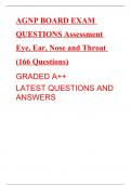 AGNP BOARD EXAM QUESTIONS Assessment Eye, Ear, Nose and Throat (166 Questions) GRADED A++ LATEST QUESTIONS AND ANSWERS
