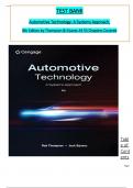 This document provides the complete test bank for Automotive Technology: A Systems Approach (8th Edition) by Rob Thompson and Jack Erjavec, covering all 55 chapters. It includes a comprehensive range of multiple-choice, true/false, and diagnostic-based questions with correct answers. Designed for automotive technology students and instructors, the test bank evaluates knowledge of engine performance, electrical systems, transmissions, diagnostics, HVAC, brakes, and other key vehicle systems.