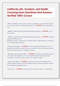 California Life, Accident, and Health Licensing Exam Questions And Answers Verified 100% Correct