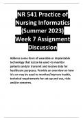 NR 541 Practice of Nursing Informatics (Summer 2023) Week 7 Assignment Discussion