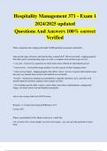 Hospitality Management 371 - Exam 1 2024/2025 updated Questions And Answers 100% correct Verified