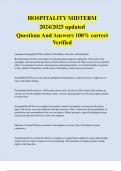 HOSPITALITY MIDTERM 2024/2025 updated Questions And Answers 100% correct Verified