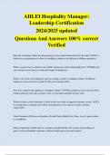AHLEI Hospitality Manager: Leadership Certification 2024/2025 updated Questions And Answers 100% correct Verified