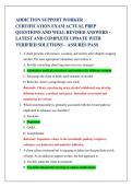 ADDICTION SUPPORT WORKER CERTIFICATION EXAM ACTUAL PREP QUESTIONS AND WELL REVISED ANSWERS - LATEST AND COMPLETE UPDATE WITH VERIFIED SOLUTIONS – ASSURES PASS