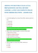 ARIZONA NOTARY PUBLIC EXAM ACTUAL PREP QUESTIONS AND WELL REVISED ANSWERS - LATEST AND COMPLETE UPDATE WITH VERIFIED SOLUTIONS – ASSURES PASS