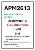 APM2613 Assignment 3 Complete Solutions UNISA 2025 Numerical Methods I Due date 24 July 2025 Thursday