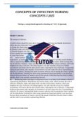 This document covers infection-related nursing concepts from Nursing: A Concept-Based Approach to Learning (Pearson, Vol. 1 & 2, 3e). It contains module 9 materials with multiple-choice and select-all-that-apply questions, each followed by the correct answer and detailed explanations. Topics include infection prevention, nursing interventions, diagnostic tests, collaborative therapies, and exemplar conditions such as cellulitis and conjunctivitis. It is designed as a complete study aid for exam ...