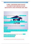 This document is a complete exam preparation resource for the HFMA Certified Specialist Payment Rep (CSPR) credential. It contains up-to-date (2025–2026) multiple-choice and short-answer style practice questions with their correct answers. Covered topics include managed care cost-control methods, Medicare and Medicaid structure, reimbursement methodologies, DRGs, ABNs, COB, utilization management, value-based purchasing, contracting strategies, regulatory agencies, HIPAA, PPACA, COBRA, EMTALA,...