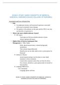 This comprehensive review guide covers all core modules for the NUR 170 Nursing Concepts I final exam (2025–2026). It includes corrected notes on ethical and legal standards, the nursing process, levels of prevention, evidence-based practice, patient-centered care, oxygenation, thermoregulation, perfusion, elimination, tissue integrity, mobility, infection, safety, comfort, culture, and pharmacology. The document also contains key definitions, exemplars, nursing interventions, review questions...