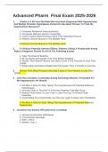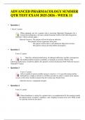 This document contains the full set of exam questions and selected answers for the Advanced Pharmacology Week 11 test, part of the Summer Quarter curriculum for the 2025–2026 academic year. It includes scenario-based questions on antimicrobial therapy, hormone regulation, chemotherapy, reproductive health, pediatrics, pain management, and pharmacokinetics. The content reflects Nurse Practitioner-level pharmacological knowledge and is ideal for advanced practice nursing students preparing for w...