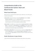 This document provides a complete overview of the cardiovascular system, covering the anatomy and function of the heart, blood vessels, and circulatory pathways. It explains vessel wall structure, capillary types, coronary circulation, cardiac conduction, ECG components, cardiac cycle events, and mechanisms regulating blood flow and pressure.