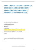 This document contains the complete set of updated exam questions and verified answers for Advanced Emergency Medical Technician (AEMT) Chapter 10, based on the 2026 syllabus. It focuses on key concepts of pathophysiology, shock mechanisms, respiratory and cardiac emergencies, metabolism, and cellular function. Ideal for AEMT students preparing for certification exams or advanced review of EMT-level physiology and emergency response principles.