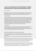 This document contains the Week 7 discussion response for the course COUN 6722: Counselling and Psychotherapy Theories (2025–2026). It analyzes the case of Deidre using Feminist Theory to address guilt and anxiety related to a past abortion and fear of partner rejection. The paper outlines Deidre’s presenting problem, treatment goals, and key therapeutic interventions, including reframing, relabeling, and assertiveness training, to promote empowerment, self-nurturance, and independence. Refe...