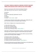 This document is a complete study guide and actual exam question bank for the ATI Adult Medical-Surgical Nursing Content Mastery Series (CMS), updated for 2025–2026. It includes the most tested ATI questions, detailed rationales, and verified correct answers. Topics cover a full range of medical-surgical nursing systems, including respiratory, cardiac, endocrine, gastrointestinal, neurological, and renal disorders. It also contains emergency protocols, lab interpretation, pain management, and ...