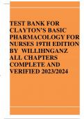 TEST BANK FOR CLAYTON’S BASIC PHARMACOLOGY FOR NURSES 19TH EDITION BY WILLIHNGANZ ALL CHAPTERS COMPLETE AND VERIFIED 2023/2024