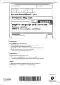 Pearson Edexcel A Level English Language (9EN0/01) Question paper 1 And Mark Scheme Summer 2025