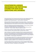 COUNTERINTELLIGENCE AWARENESS AND REPORTING COURSE FOR DOD (ASSESSMENT) EXAM QUESTIONS AND ANSWERS