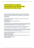 COUNTERINTELLIGENCE AWARENESS & REPORTING COURSE FOR DOD EXAM QUESTIONS WITH CORRECT ANSWERS