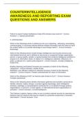 COUNTERINTELLIGENCE AWARENESS AND REPORTING EXAM QUESTIONS AND ANSWERS