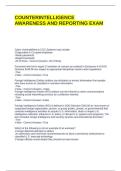 COUNTERINTELLIGENCE AWARENESS AND REPORTING EXAM WITH CORRECT ANSWERS