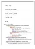 (ASU) SWG 606 MENTAL DISORDERS FINAL EXAM GUIDE QNS & ANS 2024.