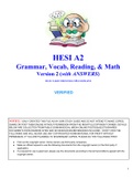 HESI A2 Grammar, Vocab, Reading, & Math Version 2 GRADE A+