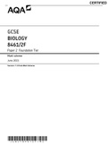 AQAGCSE BIOLOGY PAPER 2 /8461/2F VERSION 1.0 FINAL MARKSCHEME 2021 WITH COMPLETE SOLUTION