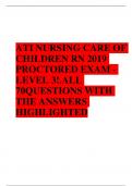 ATI NURSING CARE OF CHILDREN RN 2019 PROCTORED EXAM - LEVEL 3!. ALL 70QUESTIONS WITH THE ANSWERS HIGHLIGHTED