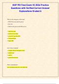 Prepare for the KHP 190 Final Exam V3 2026/2027 with this study guide featuring practice questions and verified correct answer explanations. It covers key concepts from the course including physical wellness, fitness principles, movement science, health behavior, and preventive care. The material is organized for quick study and focused review, making it helpful for both structured preparation and last-minute practice. Each explanation strengthens understanding, supports better retention, and he...